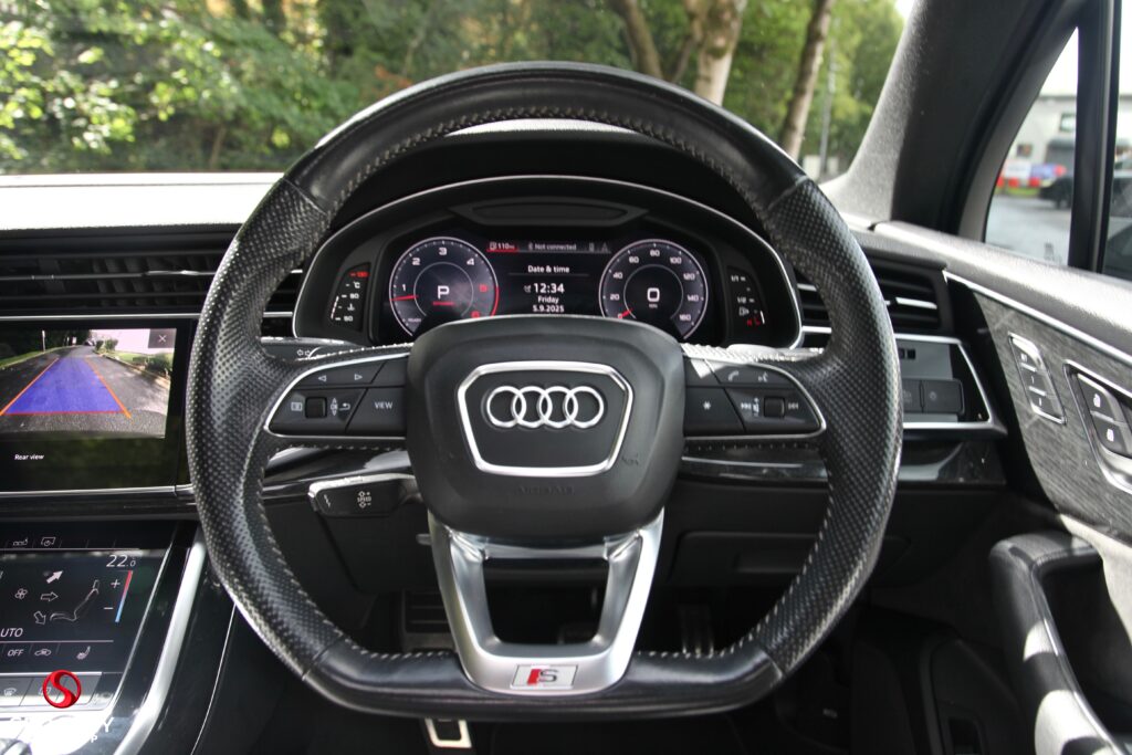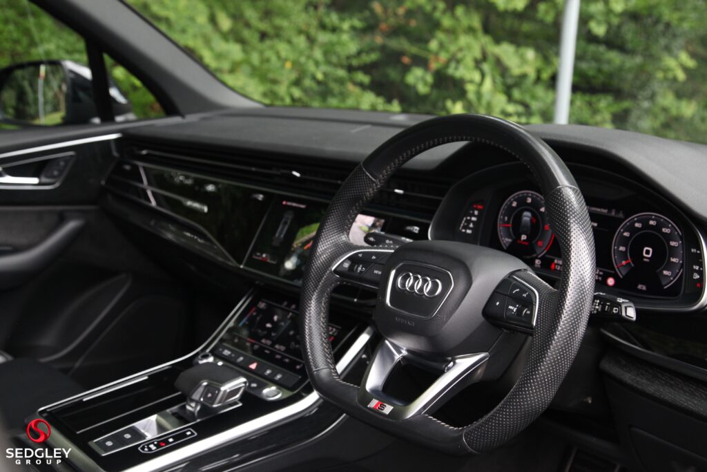 2019 (69) AUDI Q7 V6 50 BLACK EDITION QUATTRO FINISHED IN BRILLIANT BLACK, FULL SERVICE HISTORY, ELECTRIC PANORAMIC GLASS SUNROOF, REVERSE CAMERA, ELECTRIC FRONT HEATED SEATS WITH MEMORY FUNCTION AND ADJUSTABLE LUMBAR SUPPORT, 21″ 10 STAR SPOKE DESIGN ALLOYS WITH BLACK BRAKE CALLIPERS, FIXED SIDE STEPS, ADAPTIVE AIR SPORTS SUSPENSION, AUDI MATRIX LED HEADLIGHTS WITH DYNAMIC FRONT AND REAR INDICATORS, AUDI PARKING SYSTEM PLUS, AUDI PHONE BOX WITH WIRELESS CHARGING, AUDI SMARTPHONE INTERFACE, BLACK ROOF RAILS, CRUISE CONTROL WITH SPEED LIMITER, LANE DEPARTURE WARNING, LED INTERIOR AMBIENT LIGHTING PACKAGE, DELUXE FOUR ZONE CLIMATE CONTROL, HEATED ELECTRIC ADJUSTABLE FOLDING DOOR MIRRORS WITH AUTO DIMMING, EXTENDED PEDESTRIAN PROTECTION, ILLUMINATED DOOR SILLS WITH S LOGO, KEYLESS GO, POLISHED OAK INLAYS, LED DAYTIME RUNNING LIGHTS, MMI NAVIGATION PLUS WITH MMI TOUCH, NATURAL VOICE RECOGNITION, PRIVACY GLASS, FLAT BOTTOM THREE SPOKE MULTIFUNCTION STEERING WHEEL, TYRE PRESSURE LOSS INDICATOR, WINDSHIELD WITH HEAT INSULATING GLASS,AUDI MUSIC INTERFACE, AUDI CONNECT, AUTO DIMMING REAR VIEW MIRRORS, DAB RADIO, BLUETOOTH AUDIO STREAMING, WE ARE AN AWARD WINNING DEALERSHIP, ALL VEHICLES ARE HPI CLEAR, £199 ADMIN FEE APPLIES, FOLLOW US ON INSTAGRAM @SEDGLEYGROUP, PLEASE CALL US ON 0161 750 6070 OR 07555 658 658.
