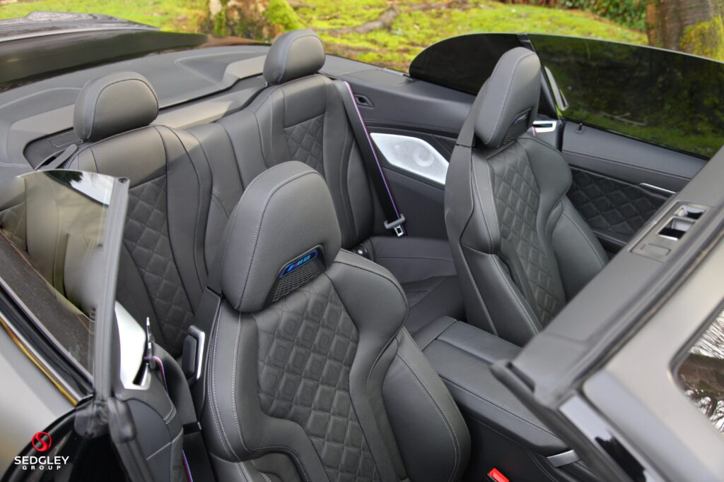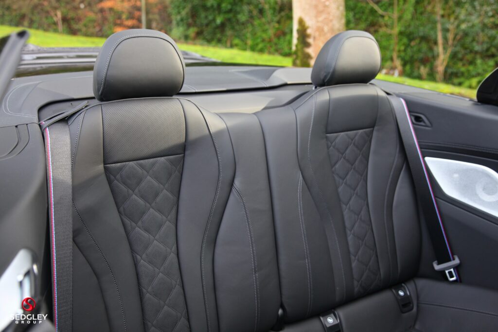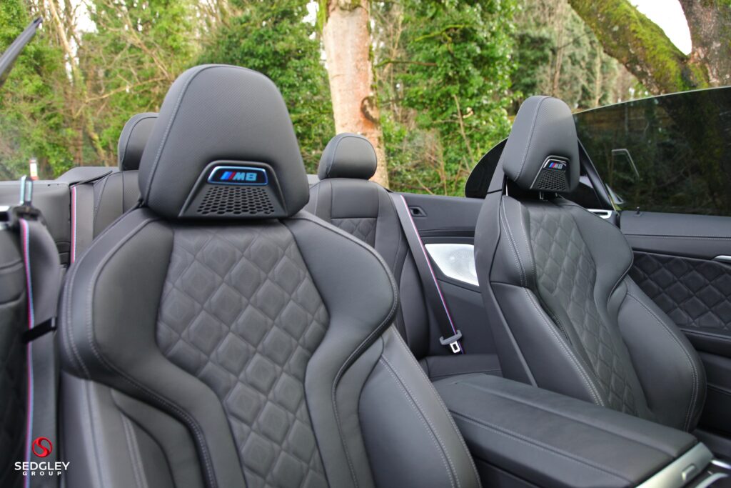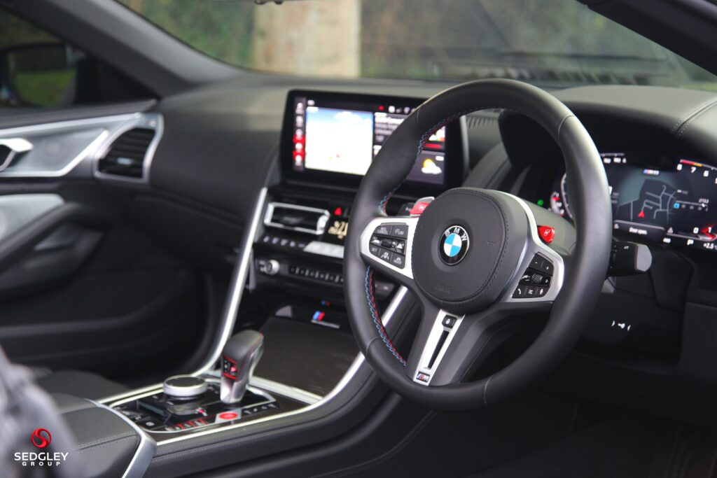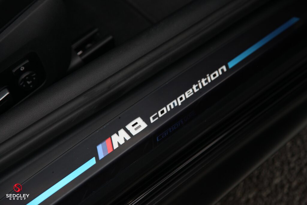 2025 BMW M8 COMPETITION CONVERTIBLE WRAPPED IN SATIN BLACK, VAT QUALIFYING, SCORPION TRACKER AND GHOST SYSTEM FITTED, CARBON EXTERIOR PACK WHICH INCLUDES FRONT CARBON SPLITTER, REAR CARBON BOOT SPOILER AND REAR CARBON CANARDS, DIGITAL HEAD UP DISPLAY, BOWERS AND WILKINS PREMIUM SURROUND SOUND SYSTEM, INTERIOR CARBON PACKAGE, SURROUND VIEW CAMERAS WITH PARK ASSIST PLUS, ELECTRIC FRONT HEATED AND COOLED SEATS WITH MEMORY FUNCTION AND ADJUSTABLE LUMBAR SUPPORT, SWITCHABLE M SPORTS EXHAUST, 20″ M LIGHT STAR DIAMOND CUT ALLOYS WITH RED M BRAKE CALLIPERS, TECHNOLOGY PLUS PACKAGE, HEATED STEERING WHEEL, FRONT HEATED NECK WARMERS, SOFT CLOSE DOORS, COMFORT PLUS PACKAGE, WINTER PACKAGE, ADAPTIVE M SUSPENSION, CRUISE CONTROL WITH BRAKE FUNCTION, ADAPTIVE LED HEADLIGHTS, DRIVING ASSISTANT PRO, COMFORT ACCESS SYSTEM, FULL MERINO BLACK LEATHER INTERIOR, INTERIOR LED LIGHTING PACKAGE, BMW LIVE COCKPIT PRO, HEATED FOLDING ELECTRIC DOOR MIRRORS, HIGH BEAM ASSIST, KEYLESS START, TELEPHONE WITH WIRELESS CHARGING, CLIMATE COMFORT WINDSCREEN, ACTIVE PEDESTRIAN PROTECTION, CARBON CORE, FRONT DOOR ENTRY LIGHTS, FOLLOW ME HOME HEADLIGHT FUNCTION, ELECTRIC ADJUSTABLE STEERING COLUMN, ANTI LOCK BRAKING SYSTEM, OIL LEVEL SENSOR, AUTOMATIC TWO ZONE CLIMATE CONTROL, RAIN SENSOR, BMW CONNECTED PACKAGE PRO, SIDE IMPACT PROTECTION, BMW CONNECTED DRIVE SERVICES, BRAKE PAD WEAR INDICATOR, CRASH SENSOR, WIFI HOTSPOT, WE ARE AN AWARD WINNING DEALERSHIP, ALL VEHICLES ARE HPI CLEAR, £199 ADMIN FEE APPLIES, FOLLOW US ON INSTAGRAM @SEDGLEYGROUP, PLEASE CALL US ON 0161 750 6070 OR 07555 658 658.
