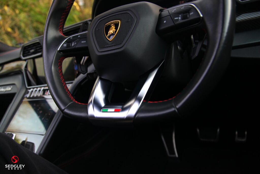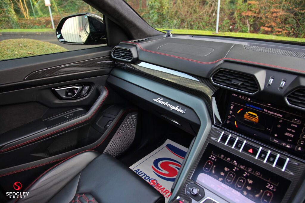 2021 (21) LAMBORGHINI URUS FINISHED IN NERO HELENE, EXTENDED LAMBORGHINI WARRANTY, FULL LAMBORGHINI SERVICE HISTORY WITH A SERVICE JUST BEEN CARRIED OUT, UK SUPPLIED WITH A COMPLETE SPECIFICATION INCLUDING NERO ADE Q-CITURA LEATHER TRIM, Q-CITURA on LEATHER SEATS, OPTIONAL STITCHING, REAR SEAT ENTERTAINMENT SYSTEM, BANG & OLUFSEN ADVANCED 3D SOUND SYSTEM, ELECTRIC PANORAMIC GLASS SUNROOF, CARBON PACKAGE, OFF ROAD MODES, PARK ASSISTANCE PACK with TOP VIEW CAMERA, BLACK MATT EXHAUST TAILPIPES, STYLE PACKAGE – SHINY BLACK, CARBON CERAMIC BRAKES WITH RED PAINTED CALLIPERS, 23″ TAIGETE RIMS WITH SHINY BLACK FINISH, PRIVACY GLASS, AMBIENT LIGHT PACKAGE, HIGH GLOSS BLACK DETAILS, BLACK ANODISED TRIM ON ALUMINIUM INSERTS, OPTIONAL STITCHING ON STEERING WHEEL, MULTI FUNCTION HEATED STEERING WHEEL IN PERFORATED LEATHER, EMBROIDERED LAMBORGHINI SHIELD ON HEADRESTS, LAMBORGHINI PUDDLE LIGHTS, LAMBORGHINI WHEEL CAPS, LAMBORGHINI BOOT MAT LINER, LAMBORGHINI CAR COVER IN BLACK WITH LOGO,VEHICLE TRACKING SYSTEM, Standard Equipment Includes Front and Rear Carbon-Ceramic Brakes, Four-Wheel Drive with Limited Slip Central Differential and Asymmetric/Dynamic Torque Distribution, Four-Wheel Steering, Adaptive Air Suspension with Active Dampers, ANAMIA Selector for STRADA, SPORT, CORSA, NEVE, TERRA, SABBIA and EGO Modes, Engine 4.0ltr V8 Producing 650bhp, 0-62mph in 3.6 Seconds, Top Speed 189mph, The world’s first Super Sport  4×4 Vehicle, WITH FULL LAMBORGHINI SERVICE HISTORY, ALL FUNDING OPTIONS AVAILABLE, PART EXCHANGE AVAILABLE, WE ARE AN AWARD WINNING DEALERSHIP, ALL VEHICLES ARE HPI CLEAR, £199 ADMIN FEE APPLIES, FOLLOW US ON INSTAGRAM @SEDGLEYGROUP, PLEASE CALL US ON 0161 750 6070 OR 07555 658 658.