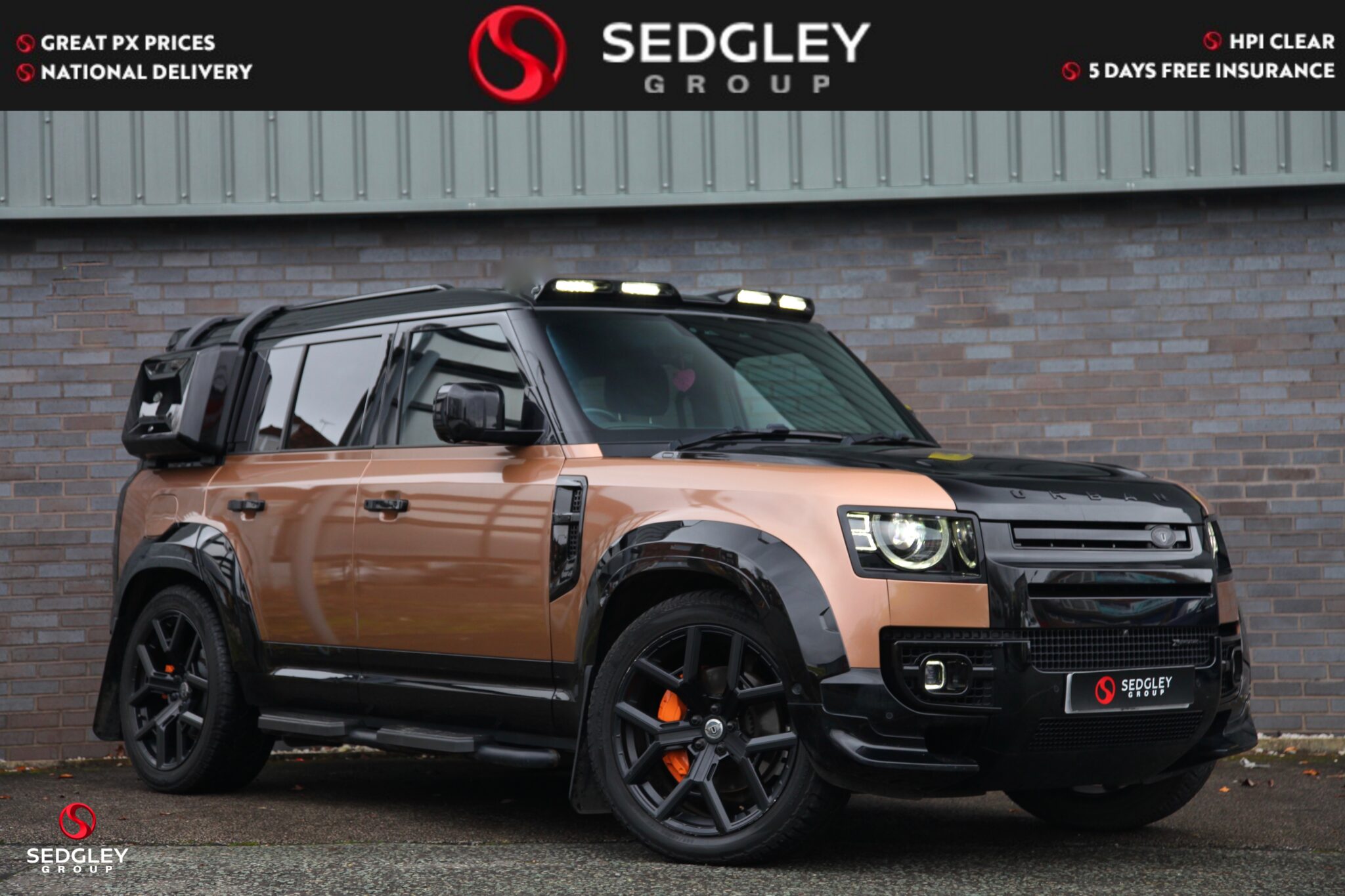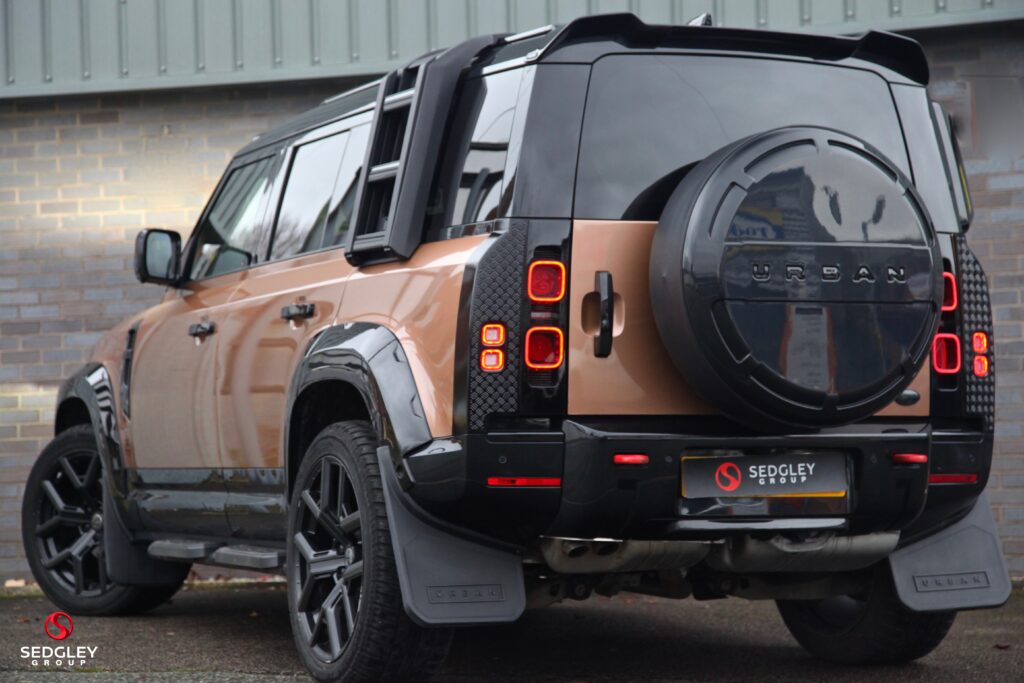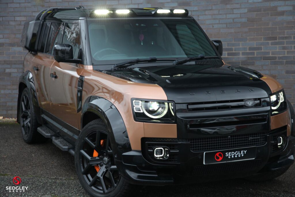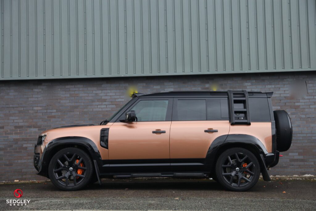 2023 LAND ROVER DEFENDER 110 D300 XDYNAMIC URBAN EDITION WRAPPED IN METALLIC BRONZE, GHOST TRACKER AND IMMOBILISER FITTED, LAND ROVER WARRANTY, FULL LAND ROVER SERVICE HISTORY, FULL URBAN EXTERIOR CONVERSION WHICH INCLUDES WIDE ARCH EXTENSIONS, UPGRADED BONNET, HIGH POWERED LED ROOF LIGHTS WITH SWITCH, REAR URBAN SPOILER, SPARE WHEEL COVER AND URBAN BADGING THROUGHOUT, ELECTRIC SLIDING PANORAMIC SUNROOF, MERIDIAN PREMIUM SURROUND SOUND SYSTEM, COMFORT AND CONVENIENCE PACKAGE, 7 SEATS, ELECTRIC FRONT HEATED AND COOLED SEATS WITH ADJUSTABLE LUMBAR SUPPORT AND MEMORY FUNCTION, 22″ URBAN SATIN BLACK ALLOYS WITH ORANGE BRAKE CALLIPERS, HEATED STEERING WHEEL, SURROUND VIEW CAMERAS WITH PARK ASSIST PLUS, ADAPTIVE CRUISE CONTROL, FIXED SIDE STEPS, EXTENDED LEATHER UPGRADE, PREMIUM LED HEADLIGHTS WITH SIGNATURE DRL, ACTIVE LANE ASSIST, KEYLESS ENTRY AND KEYLESS GO, SMARTPHONE INTEGRATION WITH APPLE CARPLAY AND ANDROID AUTO, PRIVACY GLASS, BLIND SPOT MONITORING ASSIST, CENTRE CONSOLE REFRIGERATOR, HEATED AND POWER FOLDING DOOR MIRRORS WITH APPROACH LIGHTING, HEATED FRONT AND REAR WINDOWS, 11.4 INCH TOUCHSCREEN MEDIA DISPLAY, FOLLOW ME HOME LIGHTING, RAIN SENSOR, AUTO DIMMING MIRRORS, BRAKE PAD WEAR INDICATOR, AUTOMATIC TWO ZONE CLIMATE CONTROL, DYNAMIC STABILITY CONTROL, REAR COLLISION MONITOR, TRAFFIC SIGN RECOGNITION, ANTI LOCK BRAKING SYSTEM, TRAILER STABILITY ASSIST, DRIVER CONDITION MONITOR, AUTOMATIC HIGH BEAM ASSIST, HILL DESCENT CONTROL, AUTOMATIC HEADLIGHT LEVELING, ONLINE PACKAGE WITH DATA PLAN, TYRE PRESSURE MONITORING SYSTEM, WE ARE AN AWARD WINNING DEALERSHIP, ALL VEHICLES ARE HPI CLEAR, £199 ADMIN FEE APPLIES, FOLLOW US ON INSTAGRAM @SEDGLEYGROUP, PLEASE CALL US ON 0161 750 6070 OR 07555 658 658.