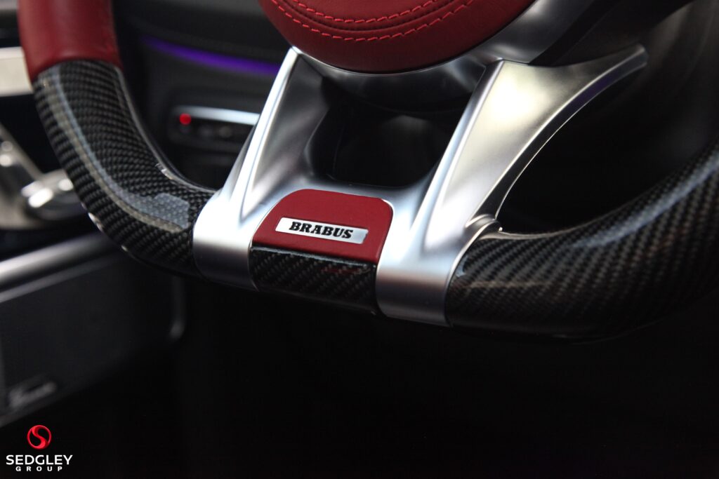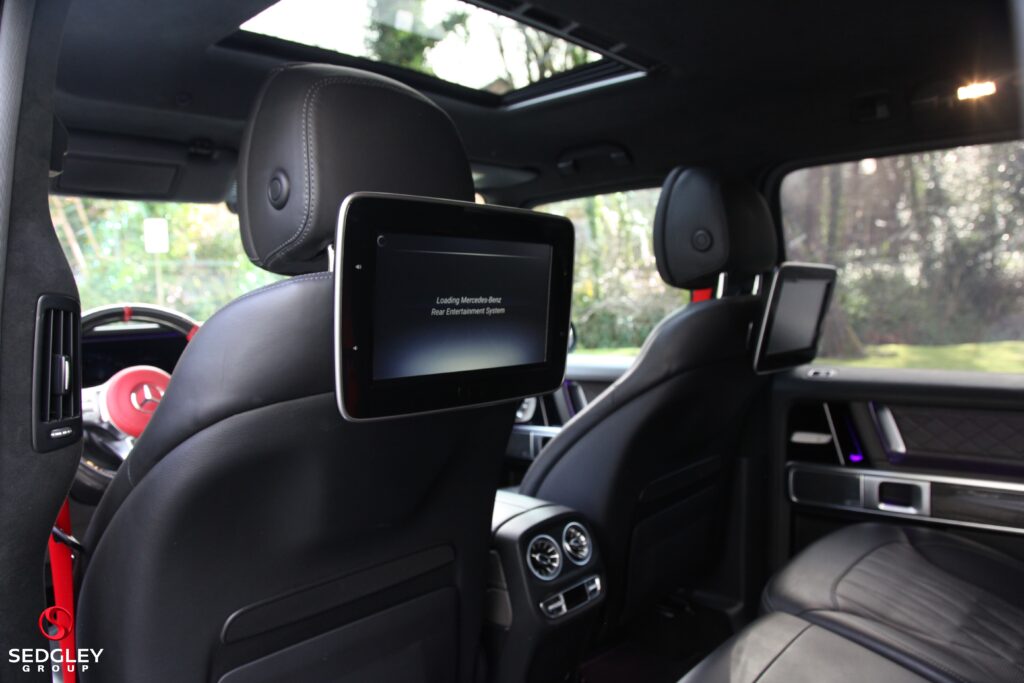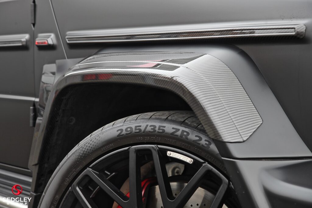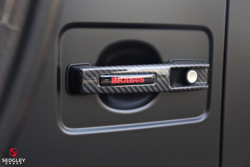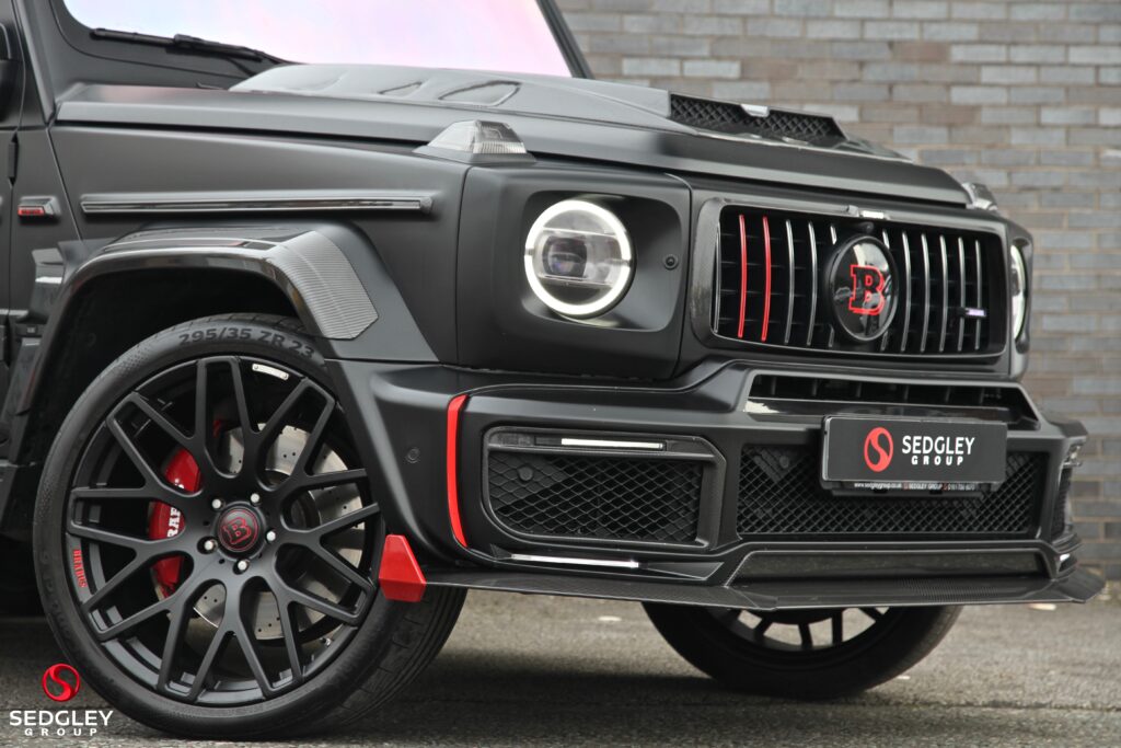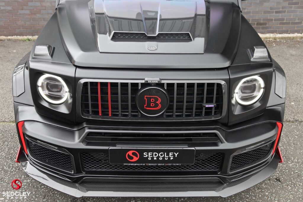 A STUNNING VAT QUALIFYING STRONGER THAN TIME EDITION MERCEDES G63 V8 BITURBO WRAPPED IN SATIN BLACK, 1 OWNER FROM NEW, MERCEDES SERVICE HISTORY, THIS VEHICLE IS A SPECIAL ONE OF A KIND EXAMPLE WITH A BIG SPEC, 700 BHP ENGINE UPGRADE BY BRABUS, 23” BLACK PLATINUM FORGED BRABUS MONOBLOCK ALLOY WHEELS WITH RED BRABUS CALIPERS, BRABUS CARBON EXTERIOR BODY KIT COMPRISING OF CARBON ROOF LED LIGHTS; CARBON BONNET SCOOP; CARBON REAR SPOILER; FRONT AND REAR UPGRADED BUMPERS; CARBON SPARE WHEEL COVER; EXTENDED FENDER FLARES; CARBON REAR & FRONT DIFFUSER; CARBON LED DAYTIME RUNNING LIGHTS BELOW HEADLIGHTS & CARBON ENGINE COVER, ILLUMINATED EXHAUST CONTROLLED BY REMOTE, THE OTHER OPTIONS INCLUDE; PANORAMIC SLIDING GLASS SUNROOF, REAR SEAT ENTERTAINMENT SYSTEM, BURMESTER SURROUND SOUND SYSTEM, UPGRADED BRABUS EXHAUST SYSTEM, MULTI COLOUR STARLIGHT HEADLINING, PARKING ASSISTANCE PARKTRONIC WITH 360 SURROUND VIEW CAMERAS, G MANUFAKTUR EXCLUSIVE INTERIOR WITH EXTENDED LEATHER AND DIAMOND DESIGN, BLACK & TITANIUM GREY PEARL NAPPA LEATHER 2 COLOUR INTERIOR COMPLEMENTED BY CARBON FIBRE INTERIOR TRIM, ELECTRIC MASSAGE SEATS WITH SIDE BOLSTER ACTIVE CONTOURING; MEMORY AND LUMBAR SUPPORT, HEATED AND COOLED FRONT SEATS, WINTER PACKAGE ALSO ADDING A HEATED STEERING WHEEL; HEATED REAR SEATS, RED NAPPA LEATHER AND CARBON FIBRE AMG PERFORMANCE FLAT BOTTOMED STEERING WHEEL, AMG DRIVERS PACKAGE WHICH INCREASES THE PEAK PERFORMANCE OF THE CAR, PLUS MUCH MORE!
