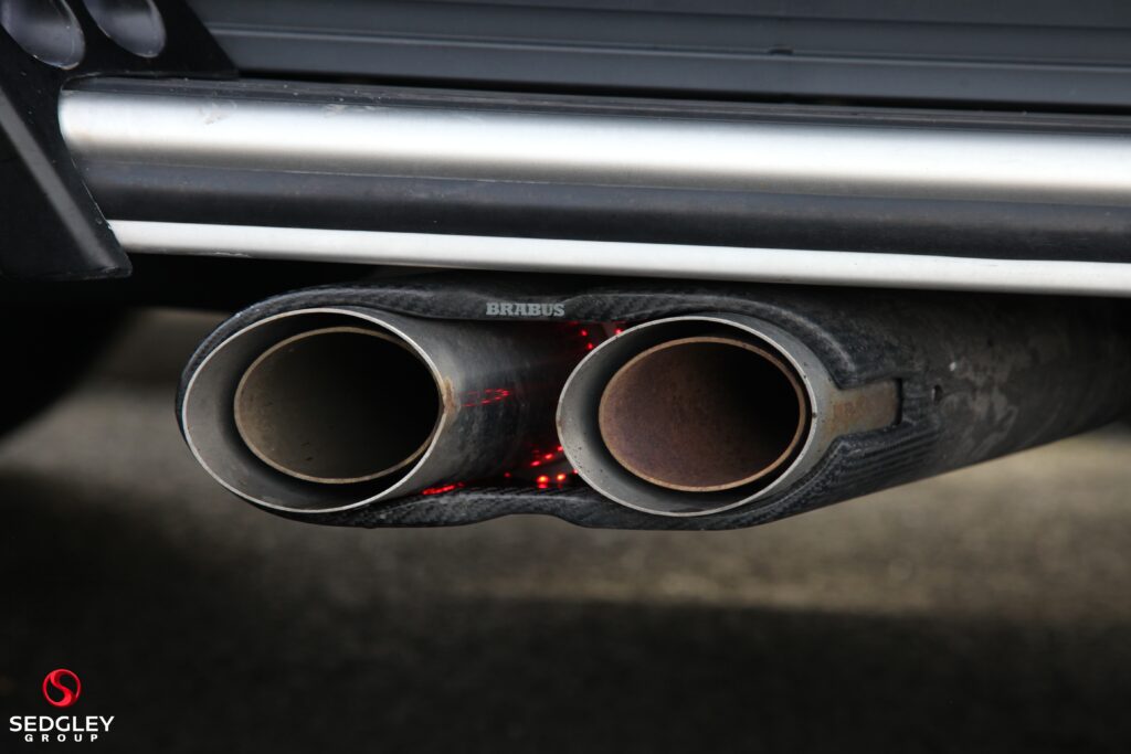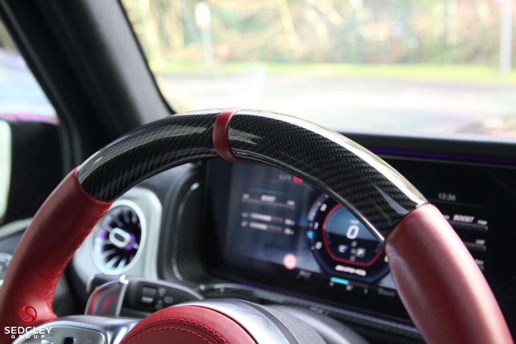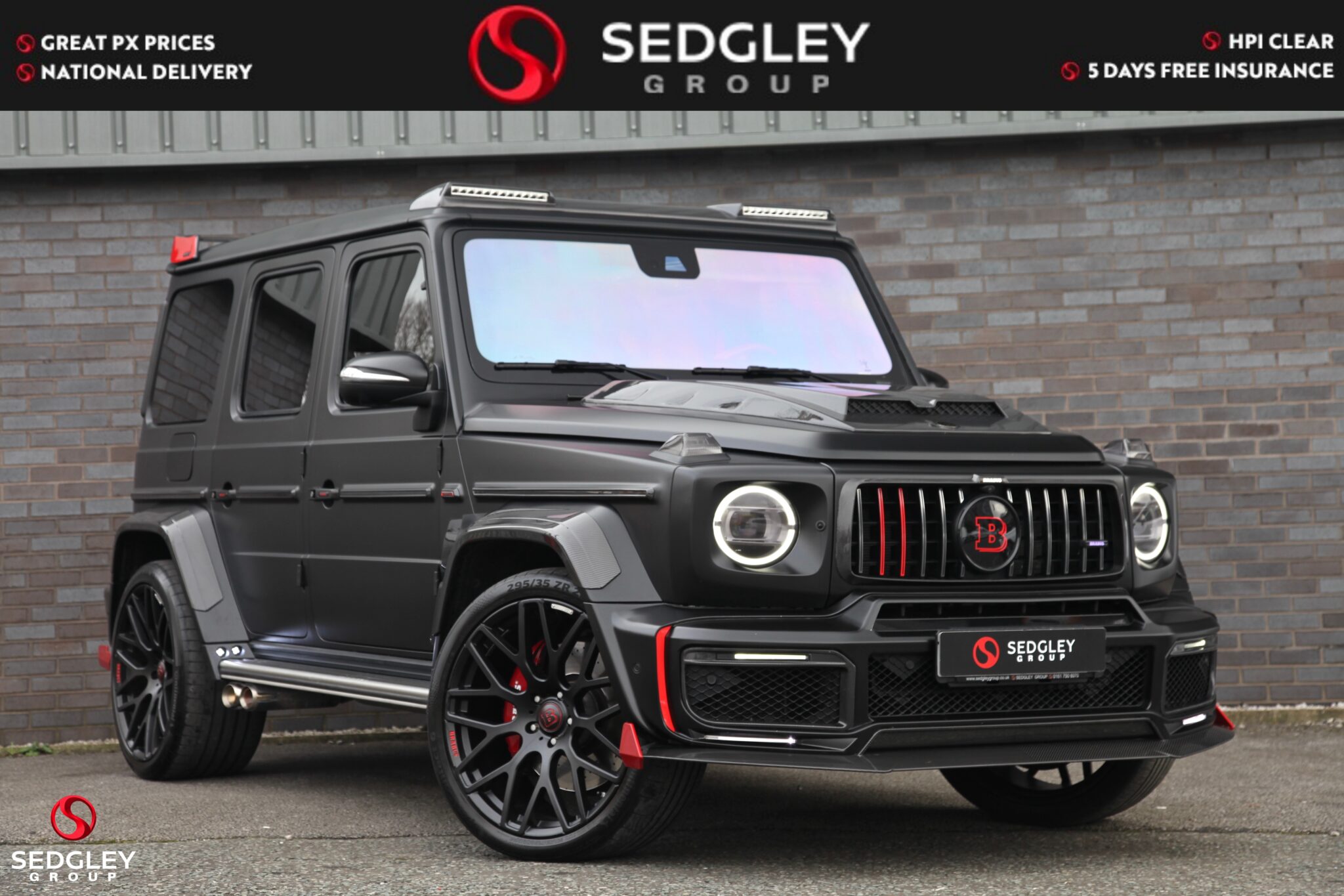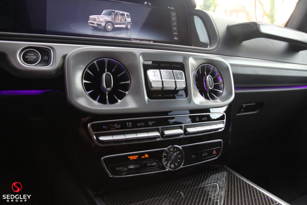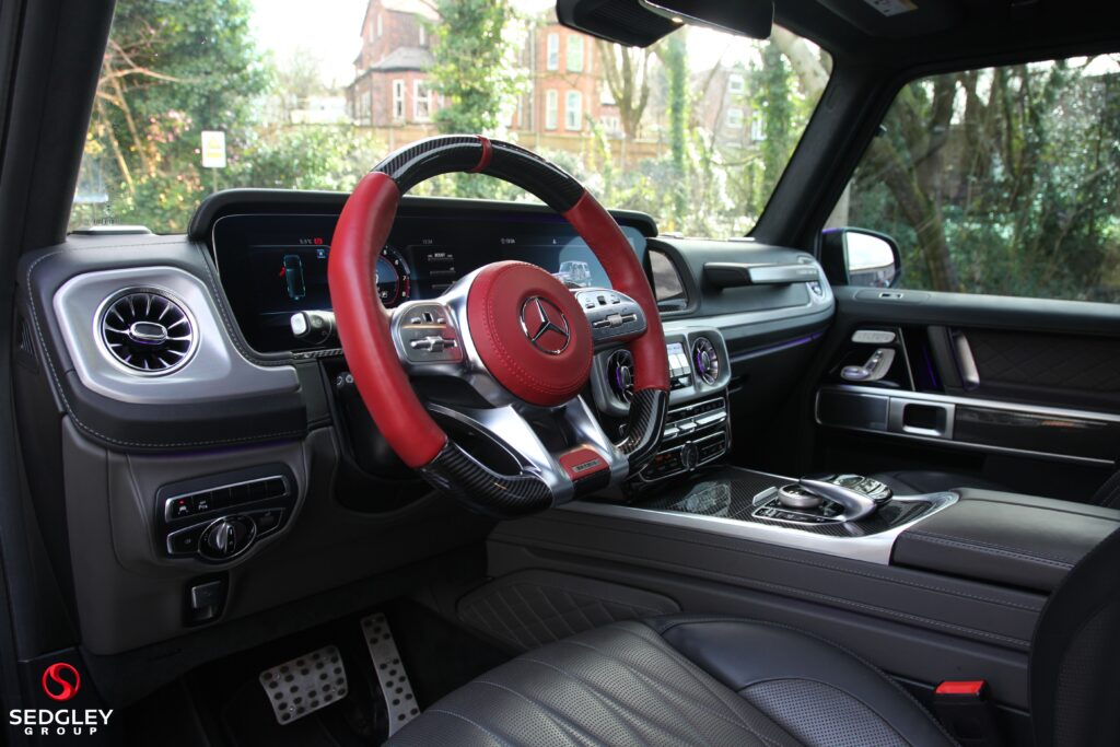 A STUNNING VAT QUALIFYING STRONGER THAN TIME EDITION MERCEDES G63 V8 BITURBO WRAPPED IN SATIN BLACK, 1 OWNER FROM NEW, MERCEDES SERVICE HISTORY, THIS VEHICLE IS A SPECIAL ONE OF A KIND EXAMPLE WITH A BIG SPEC, 700 BHP ENGINE UPGRADE BY BRABUS, 23” BLACK PLATINUM FORGED BRABUS MONOBLOCK ALLOY WHEELS WITH RED BRABUS CALIPERS, BRABUS CARBON EXTERIOR BODY KIT COMPRISING OF CARBON ROOF LED LIGHTS; CARBON BONNET SCOOP; CARBON REAR SPOILER; FRONT AND REAR UPGRADED BUMPERS; CARBON SPARE WHEEL COVER; EXTENDED FENDER FLARES; CARBON REAR & FRONT DIFFUSER; CARBON LED DAYTIME RUNNING LIGHTS BELOW HEADLIGHTS & CARBON ENGINE COVER, ILLUMINATED EXHAUST CONTROLLED BY REMOTE, THE OTHER OPTIONS INCLUDE; PANORAMIC SLIDING GLASS SUNROOF, REAR SEAT ENTERTAINMENT SYSTEM, BURMESTER SURROUND SOUND SYSTEM, UPGRADED BRABUS EXHAUST SYSTEM, MULTI COLOUR STARLIGHT HEADLINING, PARKING ASSISTANCE PARKTRONIC WITH 360 SURROUND VIEW CAMERAS, G MANUFAKTUR EXCLUSIVE INTERIOR WITH EXTENDED LEATHER AND DIAMOND DESIGN, BLACK & TITANIUM GREY PEARL NAPPA LEATHER 2 COLOUR INTERIOR COMPLEMENTED BY CARBON FIBRE INTERIOR TRIM, ELECTRIC MASSAGE SEATS WITH SIDE BOLSTER ACTIVE CONTOURING; MEMORY AND LUMBAR SUPPORT, HEATED AND COOLED FRONT SEATS, WINTER PACKAGE ALSO ADDING A HEATED STEERING WHEEL; HEATED REAR SEATS, RED NAPPA LEATHER AND CARBON FIBRE AMG PERFORMANCE FLAT BOTTOMED STEERING WHEEL, AMG DRIVERS PACKAGE WHICH INCREASES THE PEAK PERFORMANCE OF THE CAR, PLUS MUCH MORE!