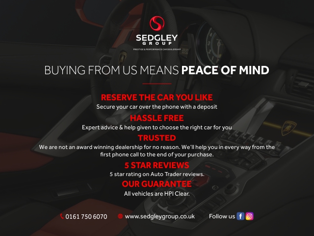 We ensure our customers are 100% satisfied with the whole buying process when coming to us, and we endeavour to make your experience as smooth as possible. Whether you’re looking for prestige, sports or supercars, Sedgley Group is the perfect place to be!
