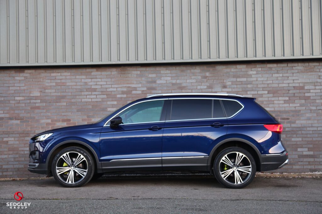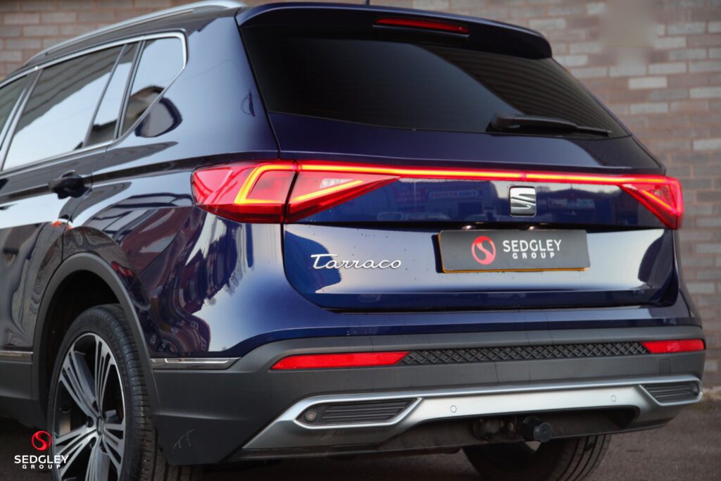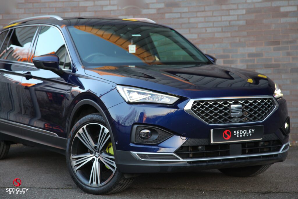 2021 SEAT TARRACO XCELLENCE LUX DSG FINISHED IN ATLANTIC BLUE, FULL SEAT SERVICE HISTORY, 7 SEAT PACKAGE, ELECTRIC LEATHER SEATS WITH FRONT AND REAR HEATED FUNCTION AND MEMORY PACKAGE, SURROUND VIEW CAMERAS WITH PARK ASSIST, ADAPTIVE CRUISE CONTROL WITH SPEED LIMITER, LANE ASSIST, SELF PARKING SYSTEM, 20″ 5 SPLIT SPOKE DIAMOND CUT ALLOYS WITH YELLOW BRAKE CALLIPERS, WINTER PACKAGE, DIGITAL COCKPIT SCREEN, SMARTPHONE INTEGRATION WITH APPLE CARPLAY AND ANDROID AUTO, KEYLESS ENTRY AND KEYLESS GO, PRIVACY GLASS, ELECTRIC FOLDING AND HEATED DOOR MIRRORS WITH MEMORY FUNCTION AND WELCOME LIGHTING, LED INTERIOR LIGHTING PACKAGE, COMFORT SUSPENSION, ACTIVE FRONT HEAD RESTRAINTS, RAIN SENSING WIPERS, NAVIGATION SYSTEM PLUS, ROOF RAILS, THREE ZONE CONTROL, TIREDNESS RECOGNITION, PEDESTRIAN PROTECTION, FULL LED HEADLIGHTS, FRONT HALOGEN FOG LIGHTS WITH BRAKE CORNERING FUNCTION, ANTI LOCK BRAKES, AUTO DIMMING REAR VIEW MIRROR, HILL HOLD CONTROL, ELECTRONIC DIFFERENTIAL LOCK SYSTEM, ILLUMINATED ALUMINUM DOOR SILLS WITH LOGO, ELECTRONIC STABILITY CONTROL, TYRE PRESSURE MONITORING SYSTEM, DAB RADIO, BLUETOOTH AUDIO STREAMING, WE ARE AN AWARD WINNING DEALERSHIP, ALL VEHICLES ARE HPI CLEAR, £199 ADMIN FEE APPLIES, FOLLOW US ON INSTAGRAM @SEDGLEYGROUP, PLEASE CALL US ON 0161 750 6070 OR 07555 658 658.