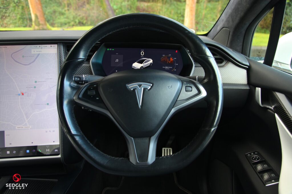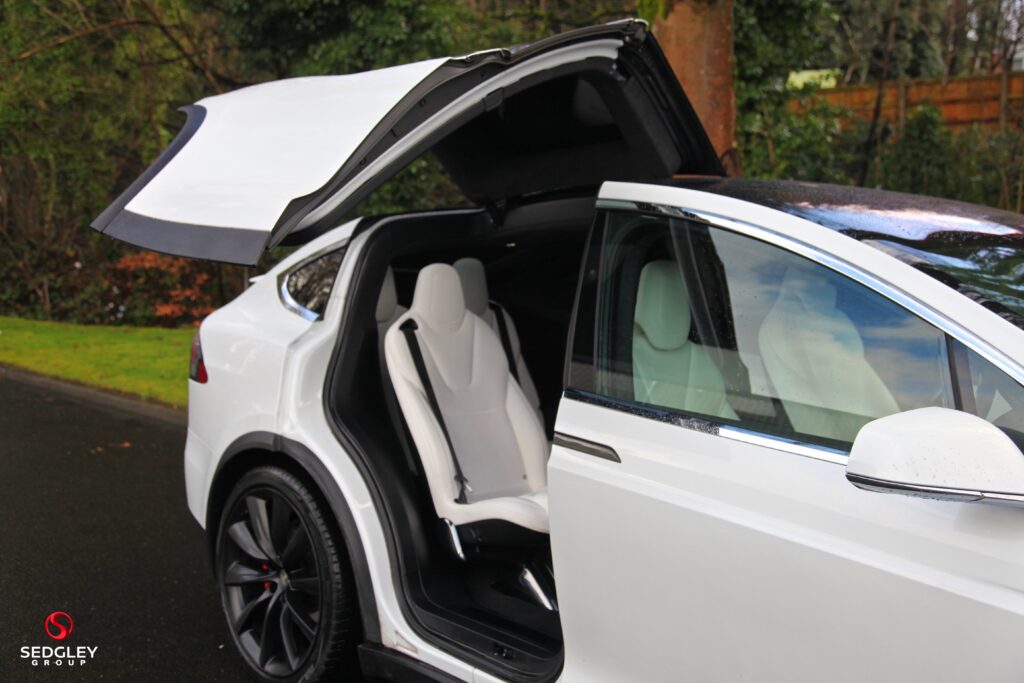 2019 TESLA MODEL X P100D DUAL MOTOR FINISHED IN PEARL WHITE, FULL TESLA SERVICE HISTORY, EXTERIOR CARBON PACKAGE WHICH INCLUDES FRONT GRILL LIP, CARBON REAR BOOT LIP, CARBON DOOR HANDLES AND CARBON CAMERA COVERS, PANORAMIC GLASS SUNROOF, 22″ SATIN BLACK 10 SPOKE TURBINE ALLOYS WITH RED TESLA BRAKE CALIPERS, ELECTRIC FRONT HEATED AND COOLED SEATS WITH MEMORY FUNCTION, MIDDLE AND THIRD ROW HEATED SEATS, HEATED STEERING WHEEL, ULTRA HIGH FIDELITY SOUND SYSTEM, WHITE INTERIOR LEATHER, INTERIOR CARBON PACKAGE, LUDICROUS PLUS SPEED UPGRADE, ALCANTARA HEADLINING, REVERSE CAMERA WITH PARK ASSIST, HIGH AMPERAGE CHARGER UPGRADE, ACTIVE ADJUSTABLE SPOILER, AUTOPILOT FUNCTION, CRUISE CONTROL, SMART AIR SUSPENSION, SUBZERO WEATHER PACKAGE, SUPERCHARGER ENABLED, BLIND SPOT MONITORING ASSIST, PREMIUM UPGRADE PACKAGE, AUTOMATIC LED HEADLIGHTS, FALCON WING DOORS, SMARTPHONE INTEGRATION, KEYLESS ENTRY AND KEYLESS GO, PARKING SENSORS, REAR LED TAILIGHTS, DUAL ZONE CLIMATE CONTROL, LED DAYTIME RUNNING LIGHTS, HEATED AND POWER FOLDING DOOR MIRRORS, ACTIVE SAFETY TECHNOLOGY, REAL TIME TRAFFIC INFORMATION, ANTI LOCKING BRAKING SYSTEM, ELECTRIC ADJUSTABLE STEERING COLUMN, RAIN SENSING AUTOMATIC WINDSCREEN WIPERS, TOWING PACKAGE, GPS ENABLED HOMELINK, HANDSFREE BLUETOOTH, DAB RADIO, TYRE PRESSURE MONITORING SYSTEM, WE ARE AN AWARD WINNING DEALERSHIP, ALL VEHICLES ARE HPI CLEAR, £199 ADMIN FEE APPLIES, FOLLOW US ON INSTAGRAM @SEDGLEYGROUP, PLEASE CALL US ON 0161 750 6070 OR 07555 658 658.