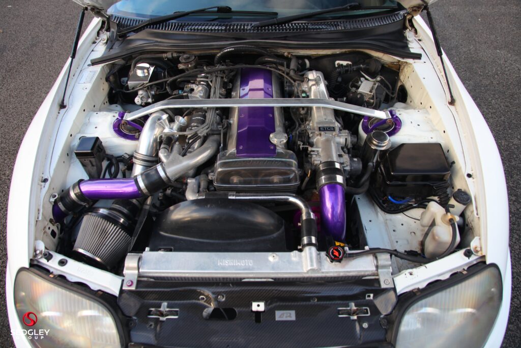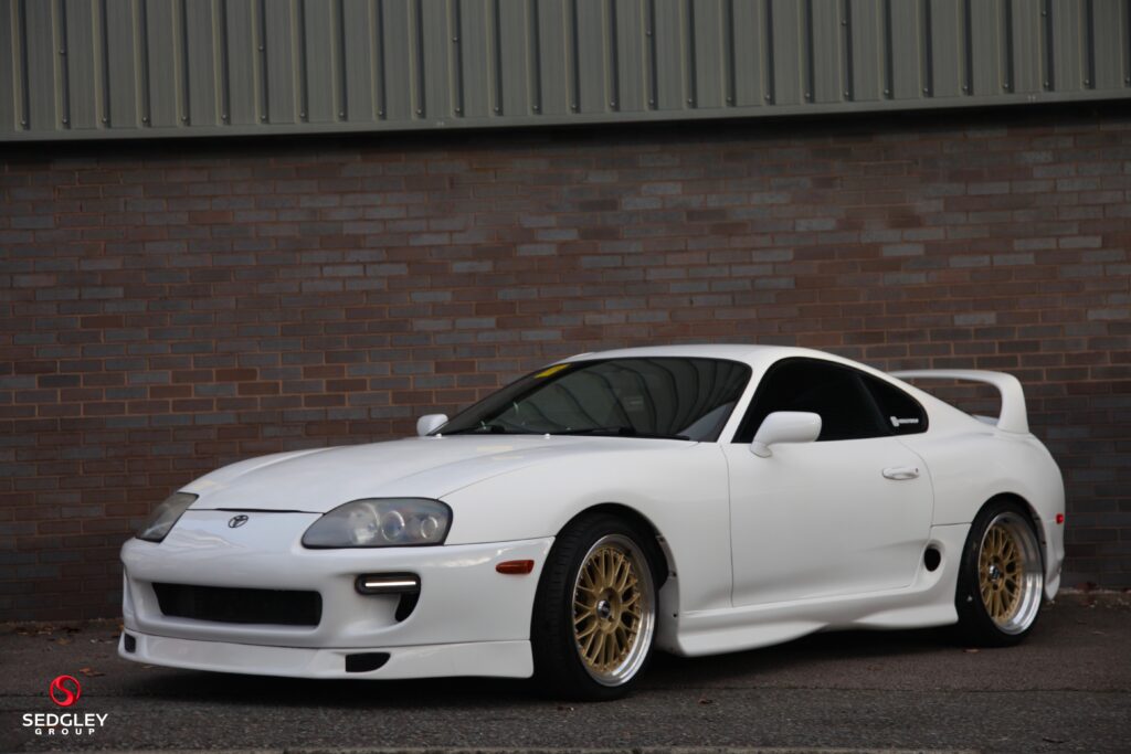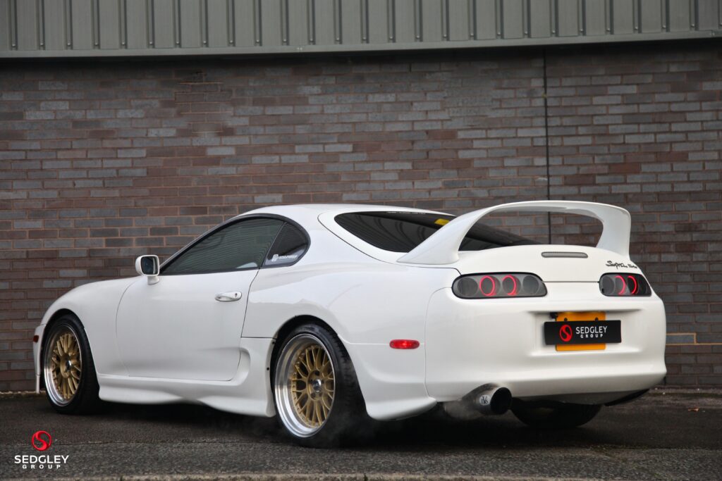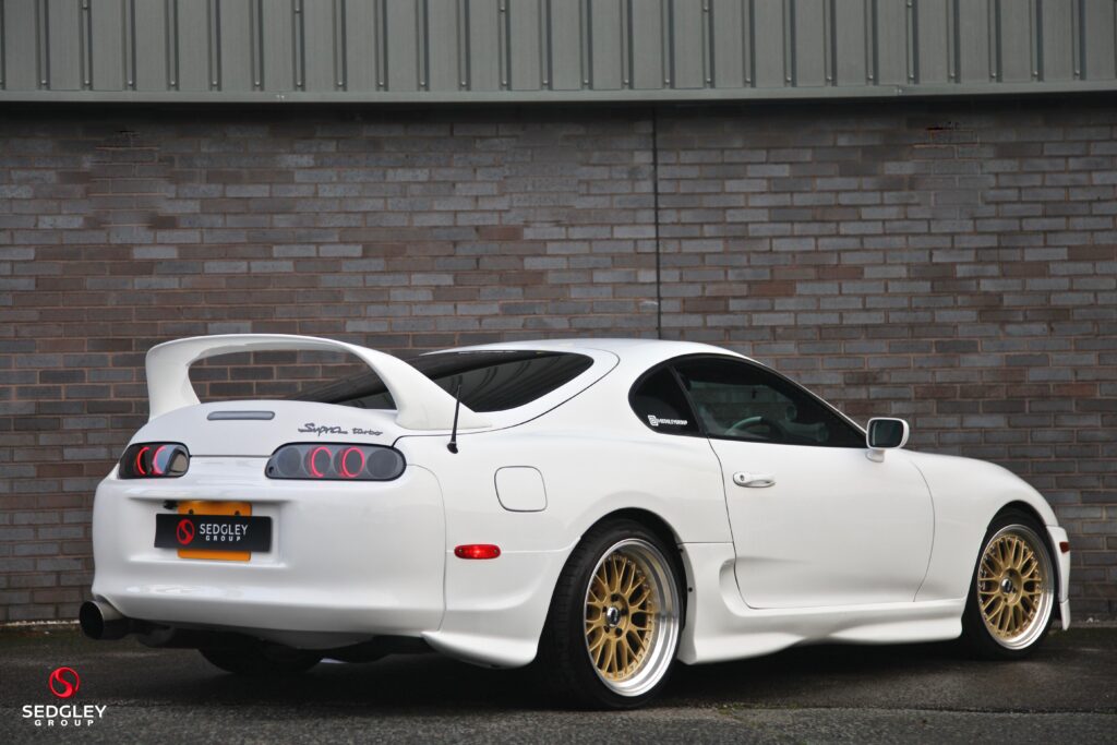 1997 toyota supra 3.0 factory facelift twin turbo 6 speed manual finished in super white, full service history, Engine spec: Rebuilt 2015, Rebored, Wiseco Forged Pistons, ACL bearings, Measured and balanced rods, New oe Toyota oil pump, water pump, new timing belt kit, crankshaft pulley, coilpacks,Head rebuilt, All parts/gaskets from Toyota, Blitz air filter,GReddy 4” intercooler & hard pipes, Mishimoto Rad new 2020,3″ down pipe/midsection,3″ veilside explosion 130 exhaust system,HKS fuel cut defender, Thunderkuntz blow off valve, Air con delete, Mocal 20 row oil cooler with stainless lines, Greddy boost controller (high and low boost setting) 1.2/1.35, Updated Fuel pump, Dyno’d at 421.1 bhp, Engine bay: Greddy clear timing belt cover, Aluminium coil pack cover powder coated purple, Greddy intercooler hard pipes powder coated purple, Polished inlet manifold/throttle body, Polished cam covers, Polished turbo pipe work, Polished water neck, Stainless top water pipe, Polished induction pipe work, Stainless brake and pad covers, Whifbitz billet rad clamps, Apr carbon cooling panel, Whifbitz pulley set, Carbon dipped fused box covers, Silicone link pipes, Battery relocated to the boot (battery replaced this year), Gearbox: V160 – royal purple synchromax oil, Spec stage 1 clutch kit (fitted during the engine rebuild), A03B LSD, Poly bush diff bushes (still to be fitted), Brakes & Suspension:Kyb dampers and eibach lowering springs, Carbing strut brace, UK spec brakes front and rear. Goodrich braided lines, Brake master cylinder rebuilt 2018, Exterior: Oem facelift rear spats, Oem plastic skirts, Oem front bumper, with Rmm style front lip, Oem rear spoiler, Brand new xxr 521’s 18×8.5 18×10, Hankook ventus v12 tyres all round. (Loads of tread front and new rear), Stubby aerial. Electric folding mirrors, Respray in oem 040 white – 2016, Interior: Facelift parts as normal, Gz speaker boxes front and rear with Vibe speakers, Omp wrc steering wheel, Recaro speed seats, mounted on custom low runners. Greddy gauges. Boost, oil pressure, oil temp, plus much that could not fit in!